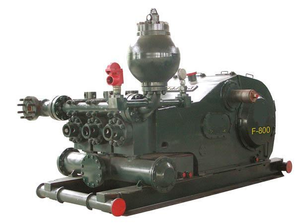The F800 reciprocation pump with three single functional cylinders chooses optimum parameters, increases the stroke properly, and reasonably reduces the number of punchings to improve the the pump suction property and to prolong the life of quick-wear parts. This pump has been widely used in oil fields, other industrial and mining enterprises, well drilling, well repair, liquid medium transport in long distances, multi-well water flooding pump station, polymer injection and other operations